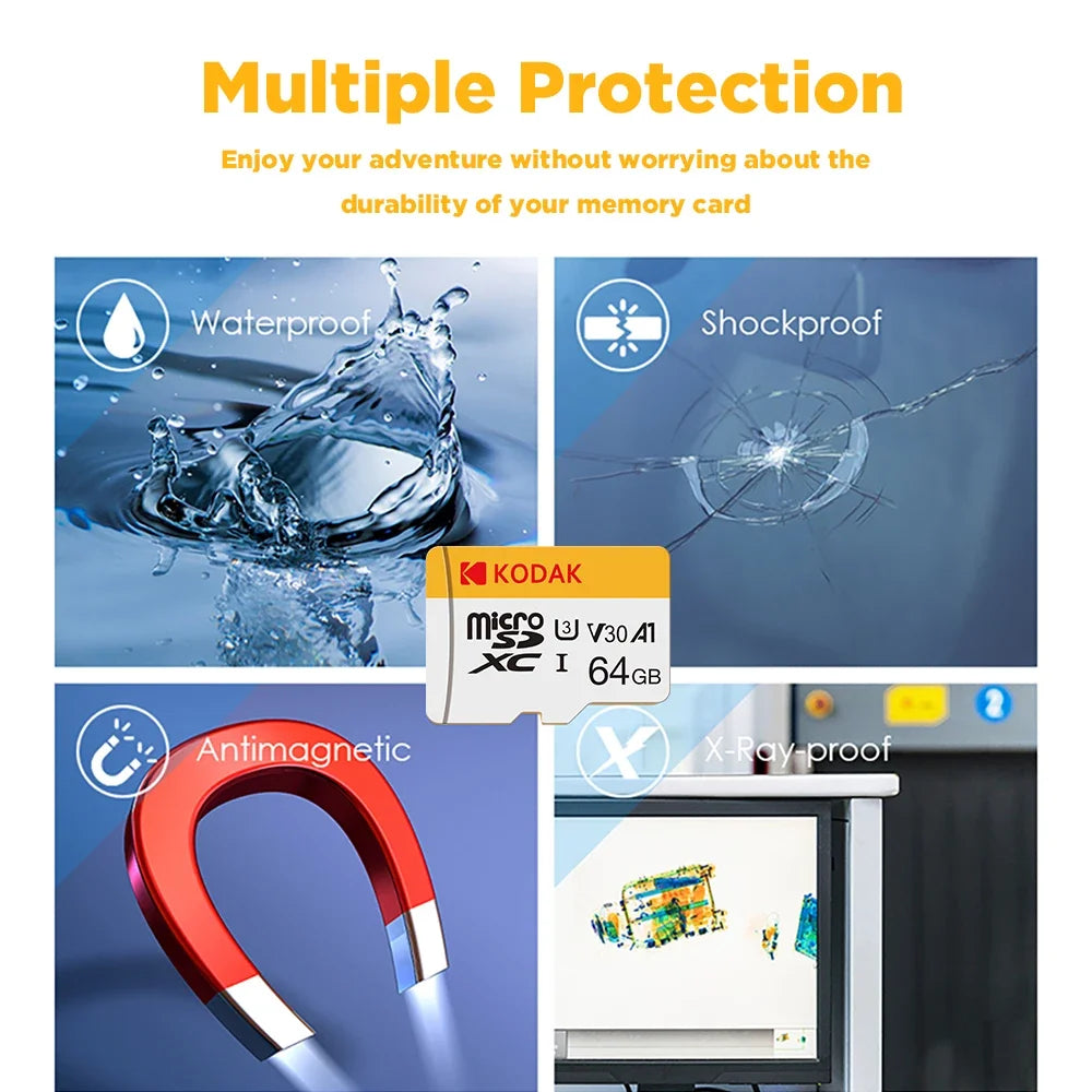 100% Original Kodak Micro SD Card 64GB Class 10 High Speed Memory Card 32GB Wholesale U3 Card 128G 256G Smartphone Tablet Camera